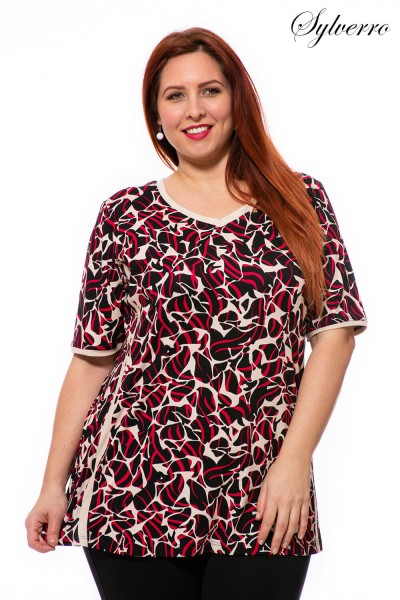 95% polyester, 5% lycra. Pohodlná, jemne padavá a elastická látka, ktorá sa pri nosení nelepí na telo. Ľahko sa ošetruje, nekrčí sa a pri praní nepúšťa farbu.