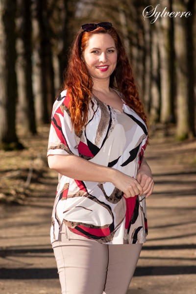 Voľný elastický top s moderným vlnitým vzorom. Jeho výstrih v tvare kvapky napína postavu a pohodlný strih voľne kopíruje línie tela a zároveň zaisťuje celodenné pohodlie.