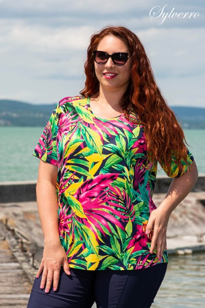 Top s krátkym rukávom z viskózy. Krásny, pohodlný a krásny kúsok. Vyzerá dobre na každom type postavy, vyberte si, čo sa vám páči. Jeho strih napína postavu, so zníženými ramenami a dĺžkou zakrývajúcou boky!