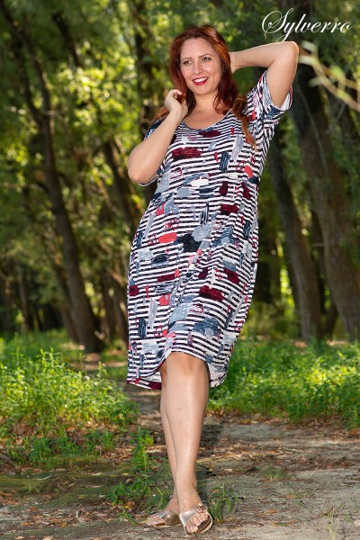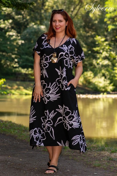 Dlhé šaty s voľnými líniami, vyrobené z prírodných materiálov, pohodlné aj v letných horúčavách. Ruky si môžete dať do vreciek aj pri chôdzi po vode. Majú spadnuté ramená, ale zakrývajú problematickejšie časti paží. V troch veľkostiach: Small (L-XL), Medium (2-3XL), Large (4-5)