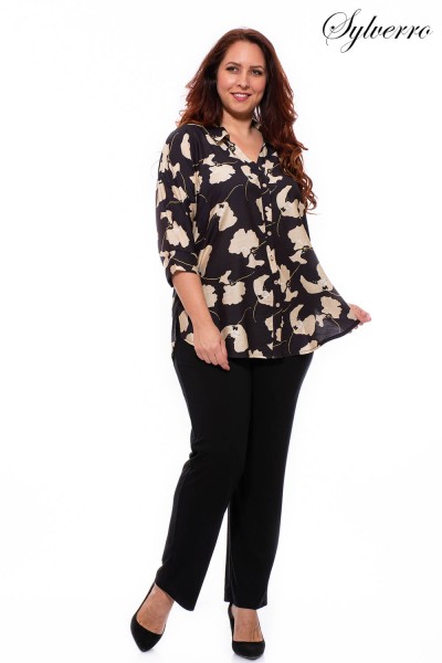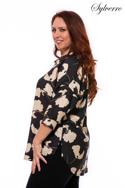Krásna, módna vzorovaná košeľová blúzka s gombíkmi po celej prednej časti. Spustené ramená, bočné rozparky, zaoblený lem. Môžete ju nosiť rozopnutú cez top, módne zaviazanú vpredu alebo úplne zapnutú. Vyrobená z príjemného, kvalitného materiálu!